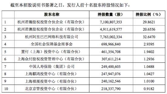 杭州君瀚持股29.86%,杭州君澳持股20.65%,两者合计50.51%,是蚂蚁集团的控股股东!
