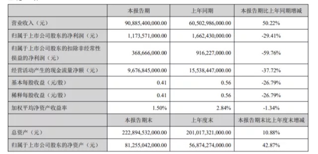 分季度来看,Q2营收498.93亿元,同比增长22.21%,环比增长21.71%;净利润9.36亿元,同比下滑39.58%。